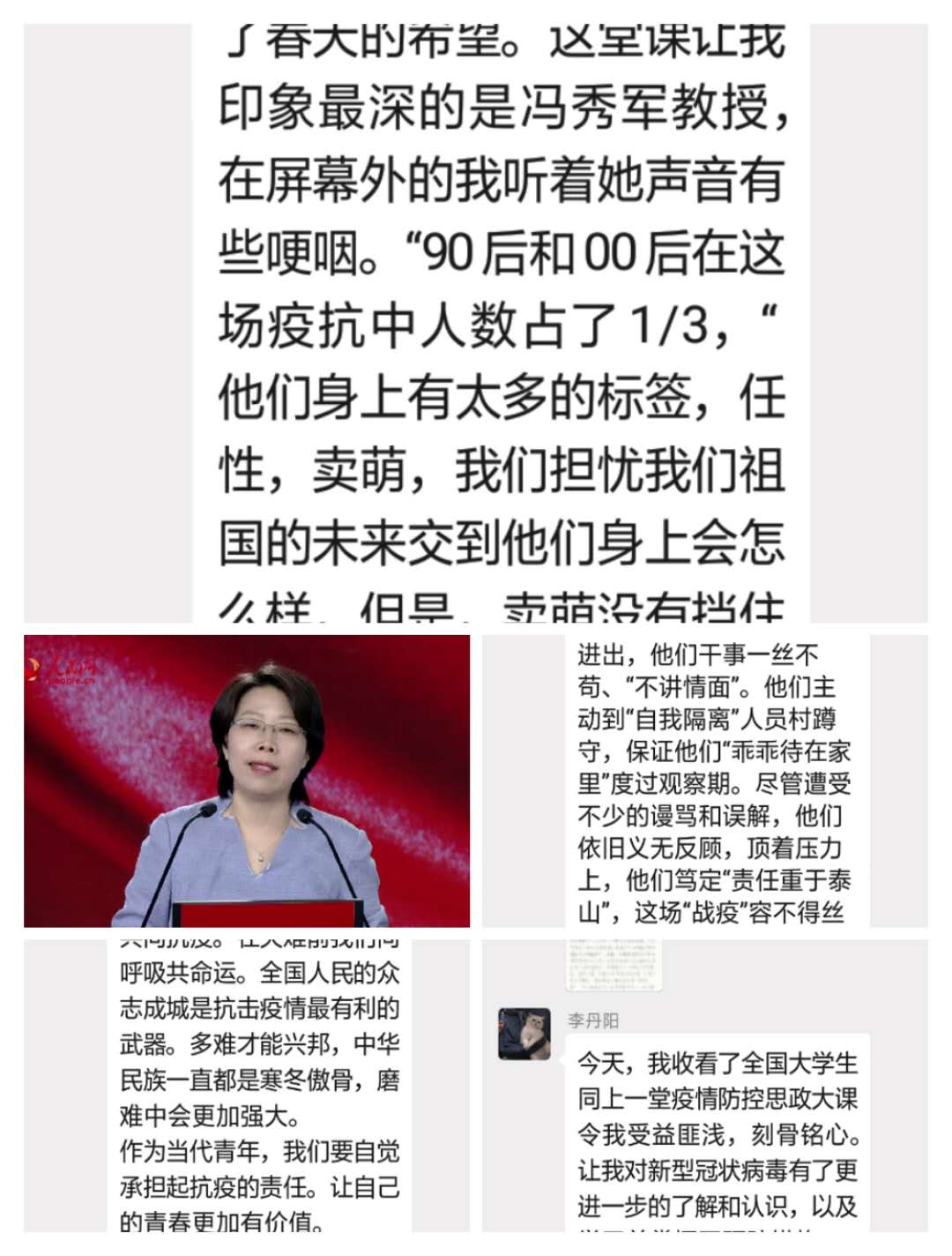 3月9日14:30,我院全体学生准时观看了公开课。据了解,本次“思政大课”特别邀请艾四林、秦宣、王炳林、冯秀军4位教授,结合“马克思主义基本原理概论”“毛泽东思想和中国特色社会主义理论体系概论”“中国近现代史纲要”“思想道德修养与法律基础”4门必修课教学内容,解读党中央关于疫情防控的决策部署,分析中国抗疫彰显的中国共产党领导和中国特色社会主义制度的显著优势,讲述防疫抗疫一线的感人故事。