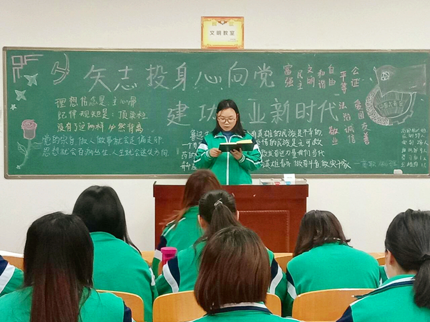 各班团支书向同学们讲述了中央组织部、中宣部“弘扬爱国奋斗精神 建功立业新时代”活动背景及现状,介绍了我国现阶段的瞩目成就和目前的国际形势,倡议同学们立足医护事业,努力学习护理技能,坚守护理职业道德,服务祖国医护事业。护理高职1805班板报内容丰富,团歌洪亮,发言积极,团课效果良好。(撰稿:买球赛十大平台 张妍 审稿:吴亚飞)