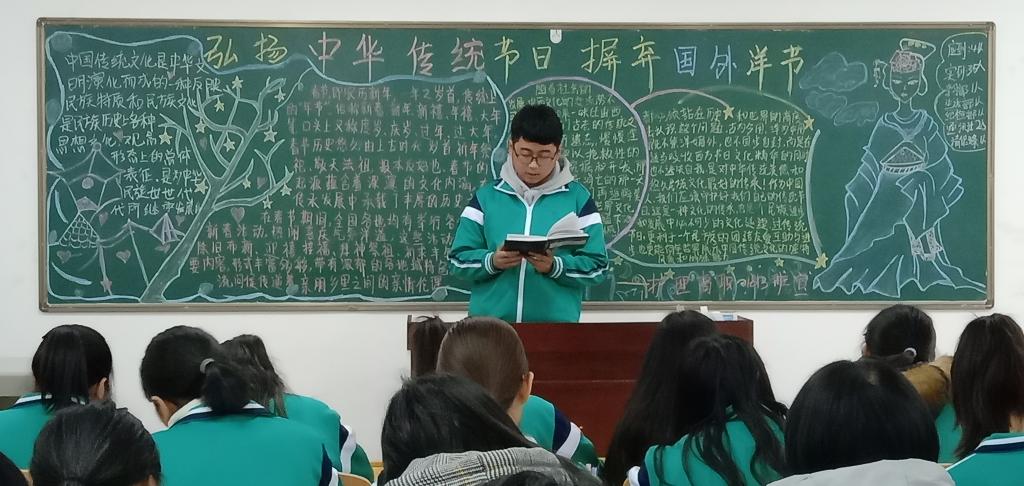 团课由各班团支书担任主讲。团支书为各班同学讲解了中国春节、清明节、端午节、中秋节等传统重要节日的历史由来和节日内涵,将我国传统节日和西方节日进行对比,指出了传统节日的社会意义,并倡议同学们理性对待西方节日,弘扬传统节日文化。护理高职1813班团课板报丰富,学生踊跃发言,团课效果良好。学生马静雪认为,青年大学生需要学习我国传统节日文化,让文化自信在日常生活中不断增长。(撰稿:买球赛十大平台 史小红 审稿:吴亚飞)