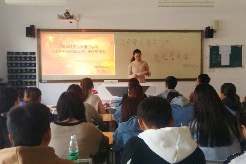 为了进一步提高我院团学干部的综合素质,10月30日下午买球赛十大平台团总支在公共教学楼北楼116教室开展了学习“团学干部自律公约”座谈会,我院团总支书记白小萌、各部门负责人参加了此次会议。