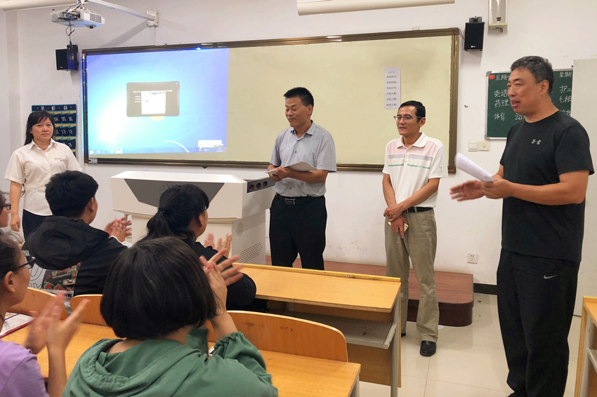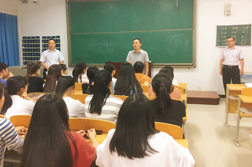 我院党总支书记吴运胜,院长张文信,副书记张春兴、吴亚飞,副院长王医平、王小峰,学生科科长李博,团总支书记白小萌,学生科副科长苏建军等分组深入新生班级当中,向新生介绍了买球官网的办学历史和买球官网骨干专业、省级一流护理专业的优势,询问了入校后的生活上的困难,对学生军训准备、生涯规划提出了建议,讲述了大学中规避校园贷、游戏成瘾等风险的方法。他们共同祝愿学生在大学里学会做人,健康成长,实现成才梦想。(撰稿:买球赛十大平台 王蓉 审稿:吴亚飞)