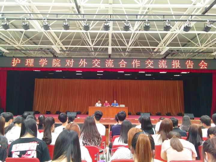 5月30日下午,买球赛十大平台在大学生活动中心召开了对外交流合作报告会,买球官网对外合作交流处郑言、我院党总支副书记张春兴、马来西亚科技大学留学生和买球官网2017届毕业生张岩出席了报告会,700余名学生参加了此次报告会,报告会由张春兴主持。