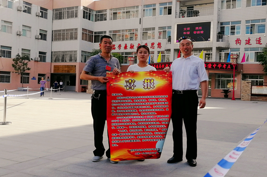 张文信为临潼中学送上喜报