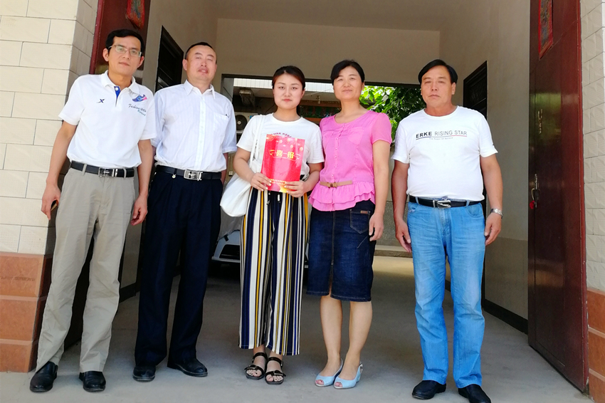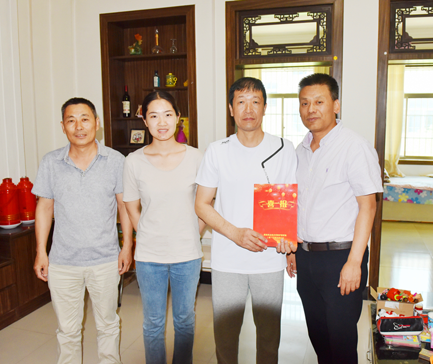 张文信、王医平为牟洋洋同学家长送上喜报