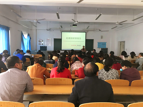 11月9日下午,买球赛十大平台内科护理教研室主任、专业带头人郭建民教授在公共教学楼公南202教室做了赴德研修报告。全体专业教师听取了报告。报告会由教学管理科副科长李晓乾主持。