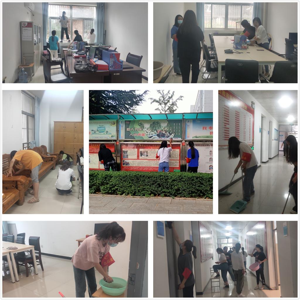 当天下午,白小萌向师生们传达了创文创卫的重要性,鼓励师生发扬担当奉献精神,从现在做起,从小事做起,用实际行动为创文创卫贡献力量。白小萌将志愿者及教师分为6组,由陈娜等教师带领6组志愿服务队对公共教学楼、教学楼前广场、医训楼会议室、各实训室、宣传橱窗、教学楼前的绿化带等场所进行了卫生大清扫。他们擦玻璃、清理垃圾个个干劲十足,有的脱掉外套、卷起袖子干个不停,有的拿抹布擦擦洗洗,提着拖把来回奔波。经过1个多小时的努力,我院办公楼、实训室变得整洁卫生,草坪更绿,环境更优美。
