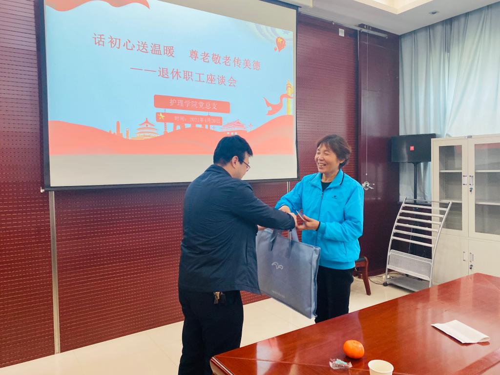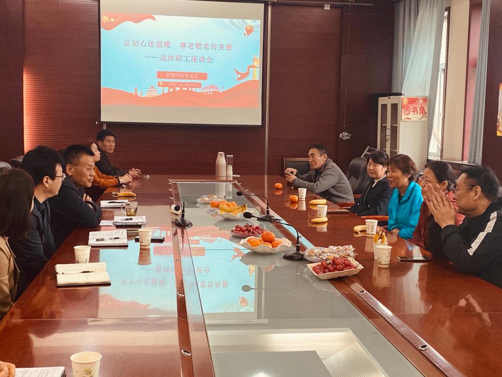 4月20日上午,买球赛十大平台在医训楼第一会议室召开了以“话初心送温暖,尊老敬老传美德”为主题的退休职工座谈会。我院党总支书记吴运胜、院长张成、副院长吴亚飞、任秋爱、副书记李晓乾以及教学科、学生科部分同志与年内退休职工参加。