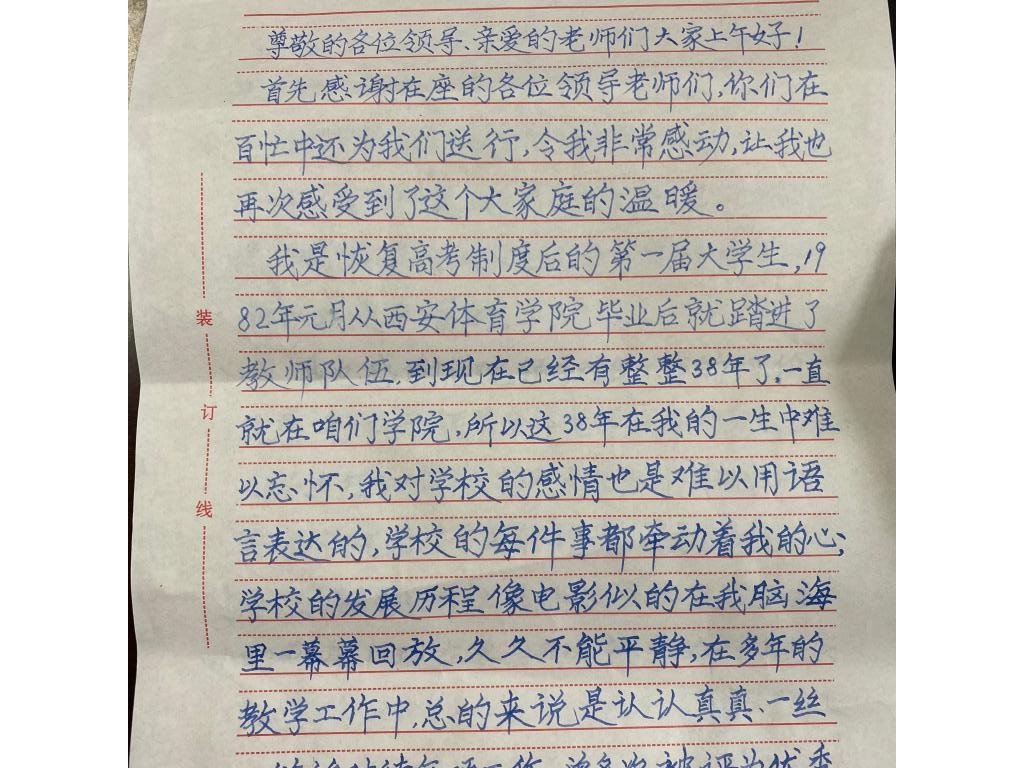 座谈会气氛融洽,退休职工们欢聚在一起叙旧谈心、感慨颇多,大家畅所欲言,各抒己见,既表达了对离开工作了几十年的岗位满怀的不舍之情,同时也为完成职业生涯光荣退休而感到高兴和自豪。学生科辅导员崔麦岭老师精心准备发言,她回顾了自己刚参加工作的情形以及学院发展的历程,表示会积极面对退休生活,目前已在老年大学开始了硬笔书法的学习,并用自己的学习成果给大家送上了浓浓的情意。