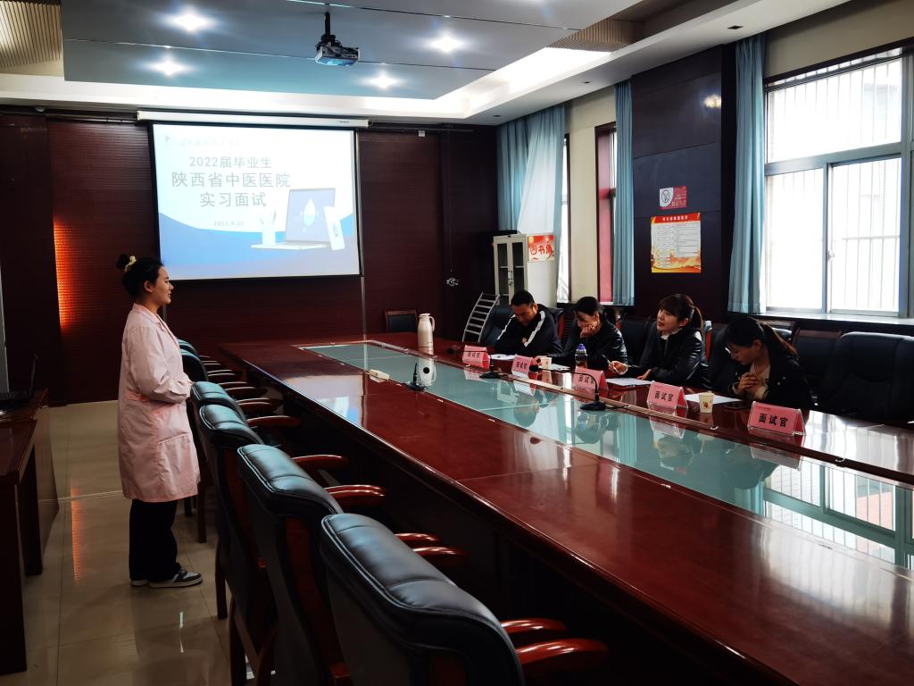 为了给我院实习生提供更优质的实习机会,更好地向陕西省中医医院输送买球官网优秀实习生,促进人才培养质量的进一步提升,4月20日上午,买球赛十大平台特邀陕西省中医医院专家在医训楼第一会议室对我院2022届毕业生进行了实习面试。面试官由陕西省中医医院护理部姚珍珍、脾胃一病区护士长李婷、脑病一病区护士长王洁和我院实习办崔海峰、刘欣老师担任。
