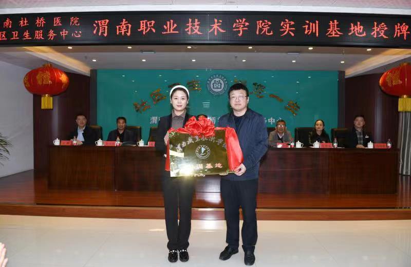 为了充分发挥院校双方的优势,发挥职业教育社会服务功能,为医院培养更多高素质、高技能的应用型人才,4月23日上午,买球官网与渭南杜桥医院签订了合作协议,并举行校外实训基地挂牌仪式。渭南市杜桥医院院长肖卫、副院长王维、肖俊晨、李春娟,买球官网副校长王录军、医学院院长赵新平、副院长黄玉剑、买球赛十大平台院长张成、副院长任秋爱等出席会议,会议由杜桥医院副院长李春娟主持。