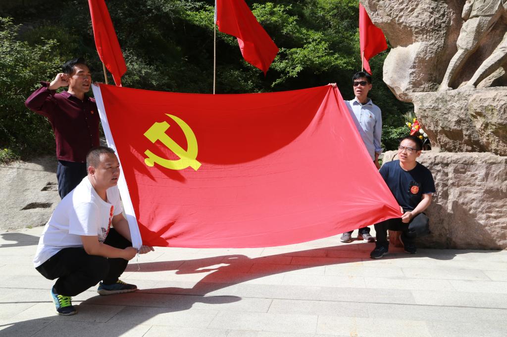 大家怀着无比崇敬的心情和对革命英雄的敬畏之心,面对党旗庄严地举起右拳,重温入党誓词,面对党旗,庄严宣誓“我志愿加入中国共产党,拥护党的纲领,遵守党的章程,履行党员义务……”。铮铮誓言坚定有力,在华山上空久久回荡,铿锵坚定的声音感染了过往的众多游客。