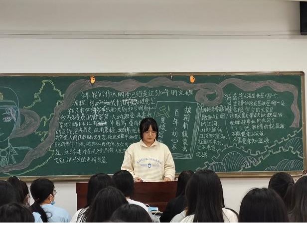 团课由各班团支书主讲。团支书带领同学们回顾了我国2020至2021年的疫情防控情况、脱贫攻坚的伟大胜利和郑州特大暴雨抗灾事迹。团支书用医护人员的辛勤付出、基层党务工作者的无私奉献,无数有志之士临危受命的优秀事迹教育引导同学们从党的光荣历史中汲取力量,向优秀医护工作者和党务工作者学习,进一步加强“四史”学习,洗涤心灵之尘,激发奋进之力,在“披荆斩棘”中铸牢“烈火丹心铸忠诚”的担当精神,擦亮信念坚定的“政治底色”。学生党思伊表示:“我们党的百年历史,就是一部践行党的初心使命的历史,就是一部党与人民心连心、同呼吸、共命运的历史。作为护生,我们要将自身命运与国家命运紧密联系在一起,在国家需要的时候勇敢担当,用血脉中涌动的澎湃力量奏响时代之歌。”(撰稿:买球赛十大平台 党思伊 审核:李晓乾)