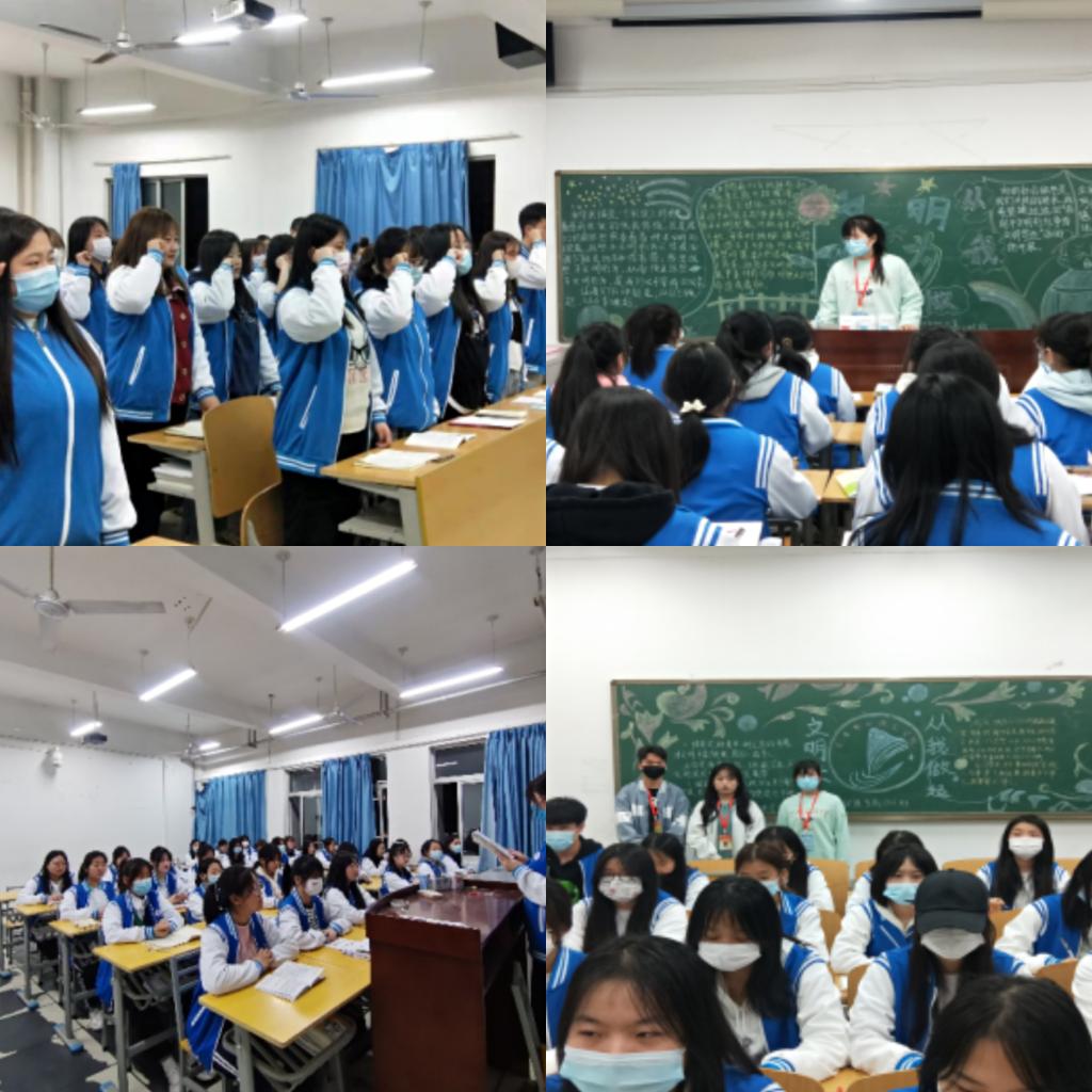 3月8日下午,买球赛十大平台团总支组织各班学生在教室有序开展“争做文明大学生,共建和谐新校园”的主题团课,林丽莎老师出席团课并指导。