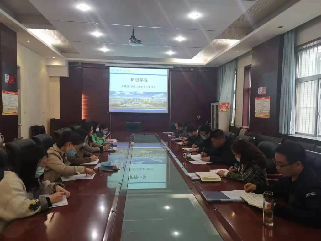4月15日下午16点,买球赛十大平台在医训楼第一会议室召开了2022届毕业生就业工作推进会。买球赛十大平台党总支书记吴运胜、院长张成、党总支副书记马淑红,毕业班辅导员班主任,参加了会议。会议由买球赛十大平台党总支副书记马淑红主持。