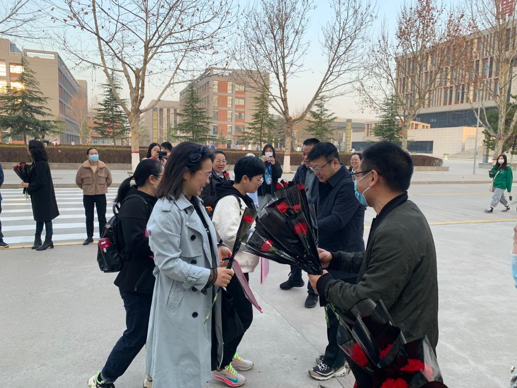 阳春三月,人面桃花相映红。春风扑面,巾帼风采傲苍穹。为进一步激发女教师爱岗敬业,锐意进取的工作热情,充分发挥“半边天”的作用,3月8日上午,在第113个国际妇女节到来之日,买球赛十大平台组织领导班子成员在公共教学楼前为全体女教师和女生们送上节日的慰问和祝福。
