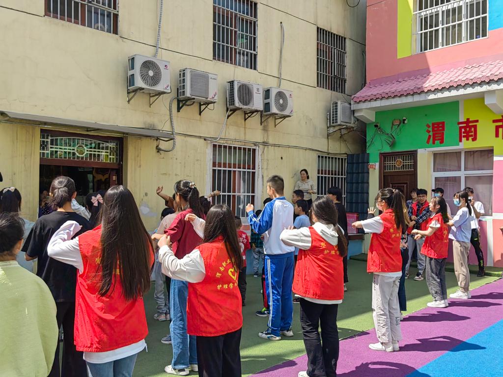 5月13日上午,护理团总支青年志愿者服务队走进渭南市高新区胜利聋儿语训学校,开展志愿活动。志愿者陪孩子们做游戏,练舞蹈、画简笔画,用心陪伴、用情关怀特殊儿童群体。