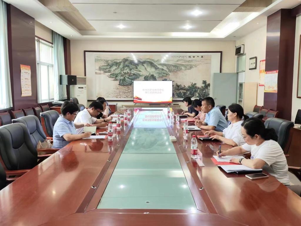 6月12日,彬州市职业教育中心教务处主任任栋平一行4人来买球官网买球赛十大平台进行考察交流。买球赛十大平台党总支书记吴运胜主持座谈会,买球赛十大平台党总支副书记周梦花、教学科副科长孙会娟、招生就业科副科长何宇及有关老师参加会议。