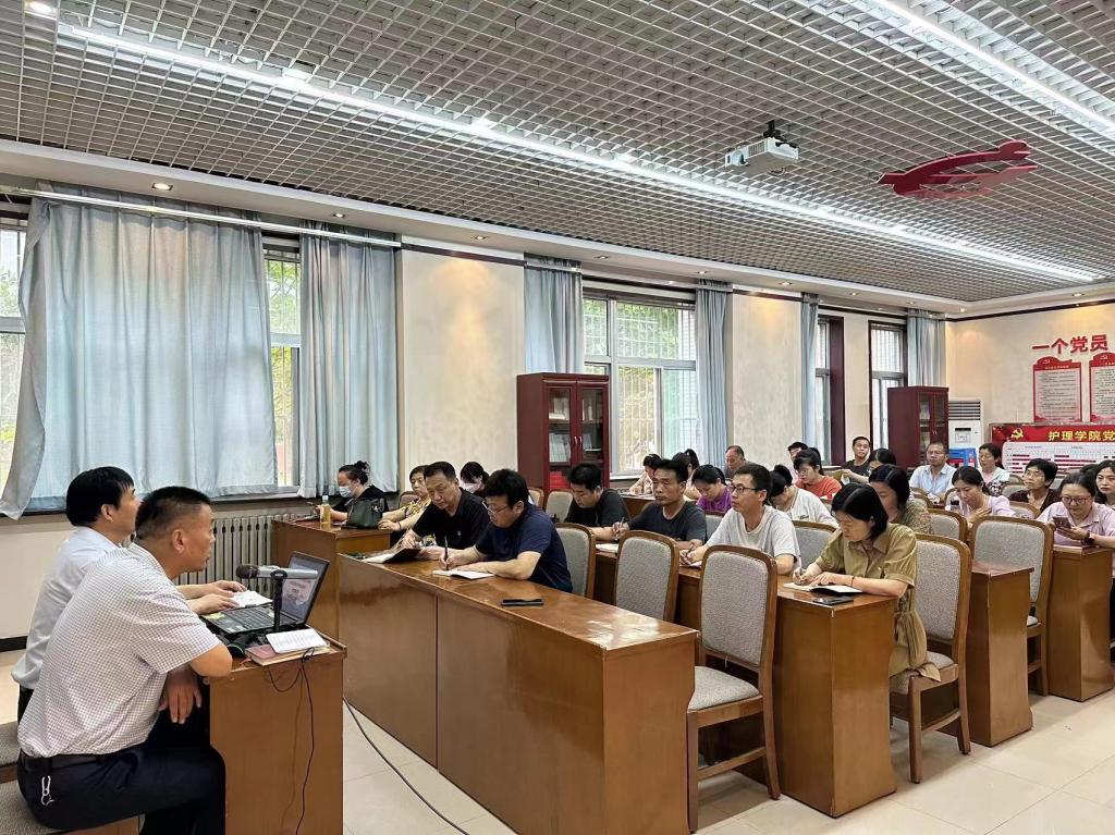 6月27日下午,党委副书记王录军以“学习习近平总书记来陕重要讲话精神 加快推进高水平专业群建设”为主题,在医训楼第二会议室为买球赛十大平台、基础课部全体党员讲了一堂精彩的党课。买球赛十大平台党总支书记吴运胜主持。