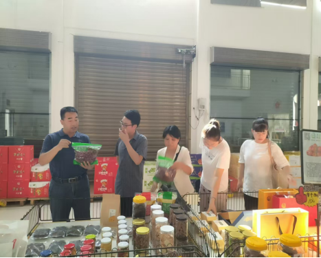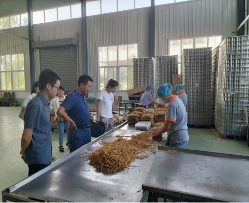 座谈会结束后在企业领导领导的陪同下,黄玉剑一行参观了干制黄花菜加工车间、黄花菜系列产品展示区。