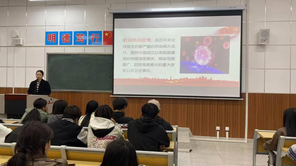席卫娟老师以“厚植爱国情怀,凝聚民族复兴力量”为题,结合医护专业实际,从不同角度、不同主题阐释了习近平新时代中国特色社会主义思想的核心要义。此次宣讲内容丰富、主题鲜明,理论讲得既有高度又有温度,使大家深刻领悟了习近平新时代中国特色社会主义思想及党的二十大精神。最后,席老师对大家提出殷切希望,医护专业学子要积极肩负起身上的责任,为中华民族的伟大复兴贡献自己的力量!