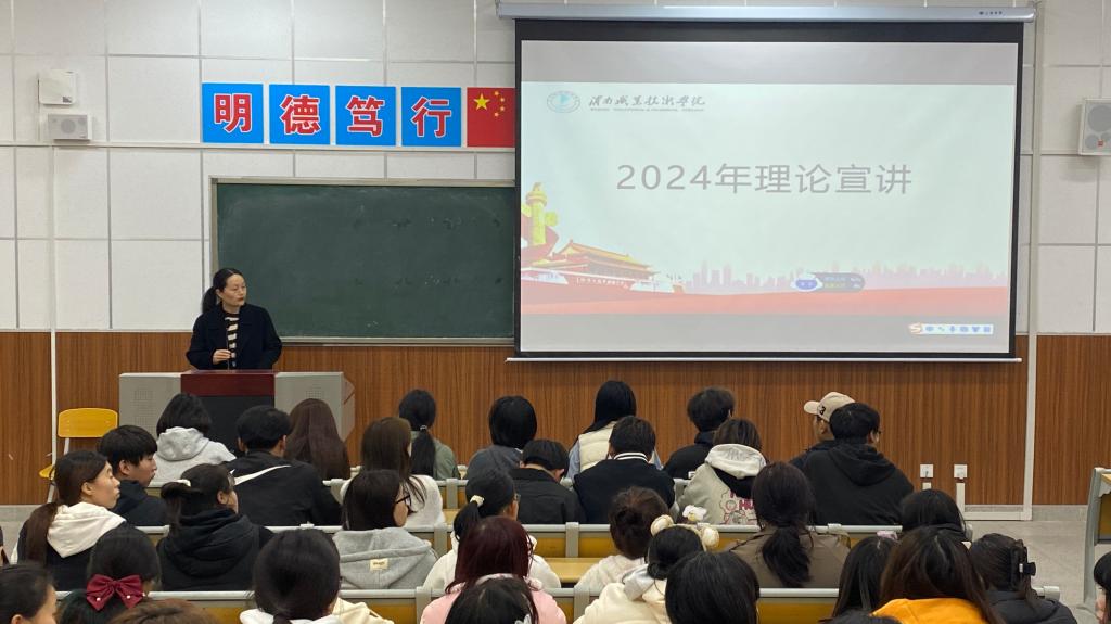 为持续深入贯彻落实习近平新时代中国特色社会主义思想,推进党的创新理论和二十大精神进教材、进课堂、进学生头脑,提高青年学生的思想政治素养和理论水平。买球赛十大平台于2024年10月24日在综合楼302开展了2024年理论宣讲会,由席卫娟老师主讲,24届代表班级参加。