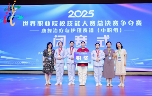 8月25日,2025年世界职业院校技能大赛护理赛道争夺赛(中职组)在南京卫生学校圆满落幕。买球官网买球赛十大平台2022级五年制护理专业苏静钰、刘若西怡、董晴月、李杨茜等4名学生,在副院长任秋爱和蒋丽、黄睿、张敏三位指导教师的全程陪伴与精心培育下,凭借扎实的护理专业功底、规范的临床操作技能和沉稳的临场应变能力,从全国86支参赛劲旅中脱颖而出,成功斩获该赛项铜奖,为买球官网护理技能育人成果再添闪亮一笔。