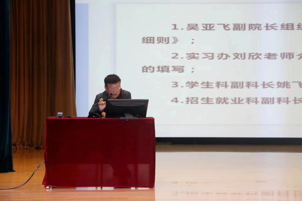 2023年6月5日-6日买球赛十大平台在图书馆报告厅召开了2024届1100多名学生的实习动员大会,买球赛十大平台院长张成、副院长吴亚飞、学生管理科副科长姚飞、招生就业科副科长何宇、实习办刘欣老师、全体辅导员班主任以及全体2024届学生参加了会议,会议由教学科副科长孙会娟主持,报告分2场进行。