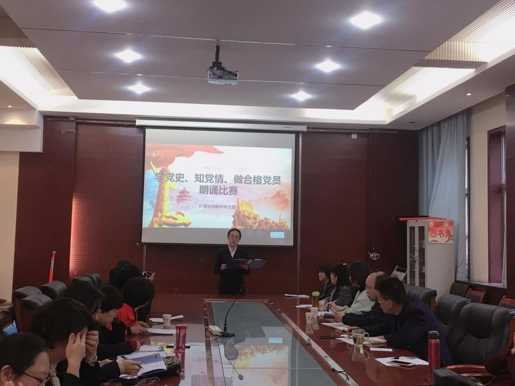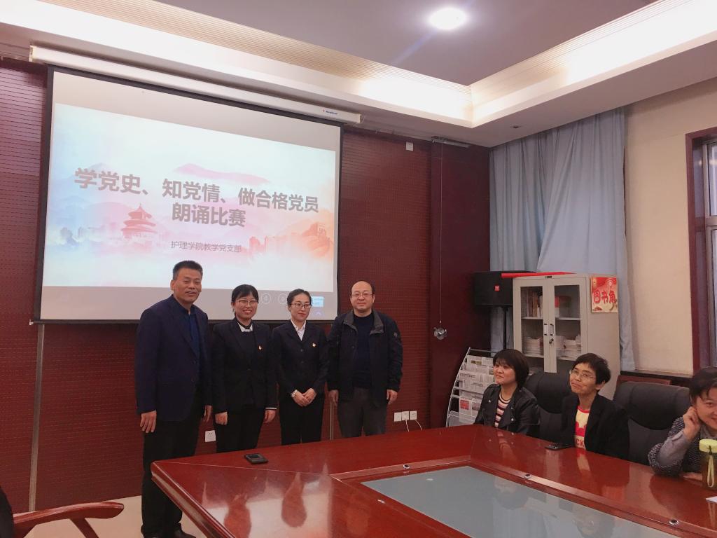 10月30日下午,为了庆祝中国共产党成立98周年,重温党的光辉历程,弘扬党的优良传统,坚定理想信念,买球赛十大平台教学党支部在医训南楼第一会议室举行了“学党史知党情 做合格党员”朗诵比赛。我院党总支书记吴运胜、院长张成、副院长吴亚飞、副书记马淑红出席朗诵会并担任评委,共十二名党员参加了朗诵比赛。