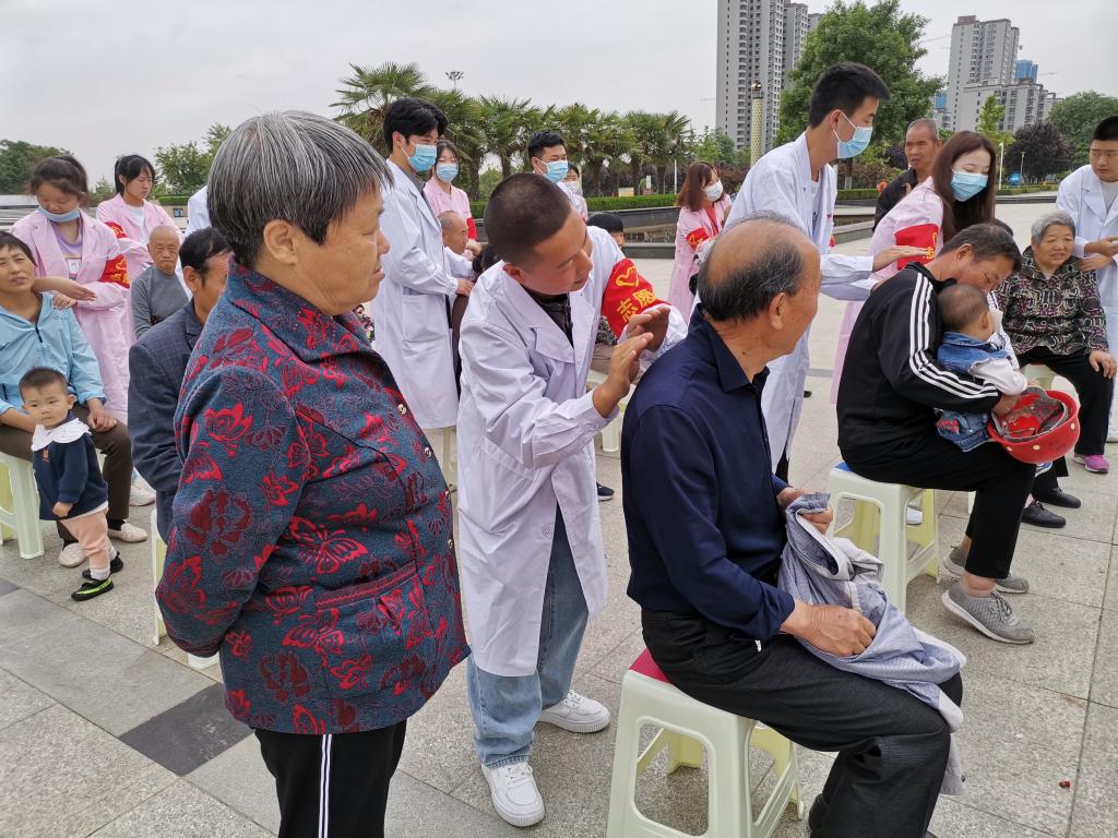27日上午,志愿者们到达高新时代广场、郑家小区为社区居民测量血压、按摩、知识宣传和健康知识普及。志愿者或耐心解答居民的咨询,或为居民测量血压,或宣传养生护理知识,或为居民推拿按摩、缓解疲劳。活动中志愿者各司其职,用自己所学的专业知识,为到场参加义诊的居民提供合理、健康的治疗建议,他们用微笑和热情的服务温暖着社区居民。