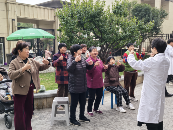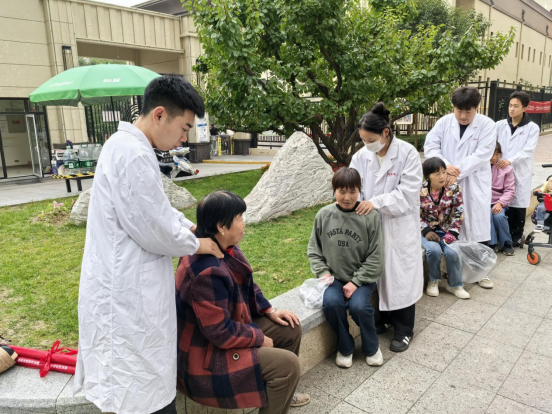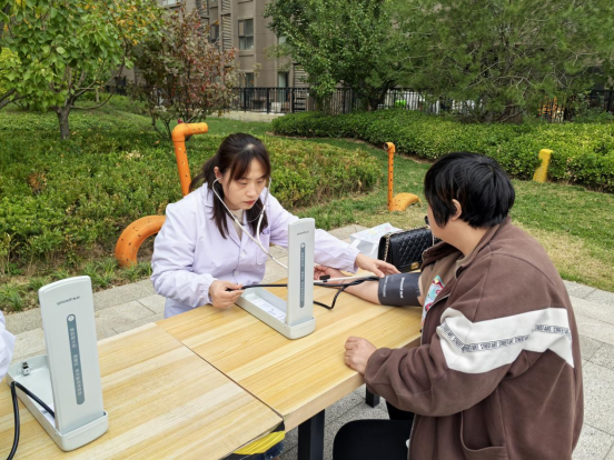 在社区服务点,党员教师和学生们发挥专业特长,为居民测量血压和肩颈按摩,教大家做手指操,热情细致的解答群众的疑问,针对不同病症和个体差异给大家讲解注意事项及常见病、多发病的预防知识。
