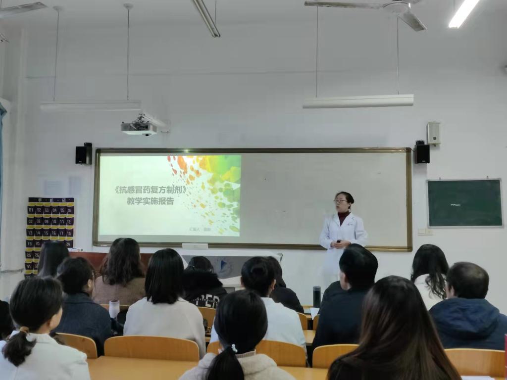根据比赛流程,9个参赛团队提前抽签决定出场顺序,通过现场“说实施报告”(8-10分钟)和两段“教学展示”(10-15分钟)的方式进行。评委们认真聆听了说课讲课过程,对比各参赛团队教学设计资料和现场展示情况,根据评分标准严格打分。经过激烈角逐,最终陈芳团队《“药”尔康,为生命安全护航——给药技术》、席卫娟团队《精技促健康,共情护安宁》、雷娜团队《抗感冒药复方制剂》和张敏团队《爱在心间,“救”在身边——院前急救》分获前四名,成功晋级校赛。