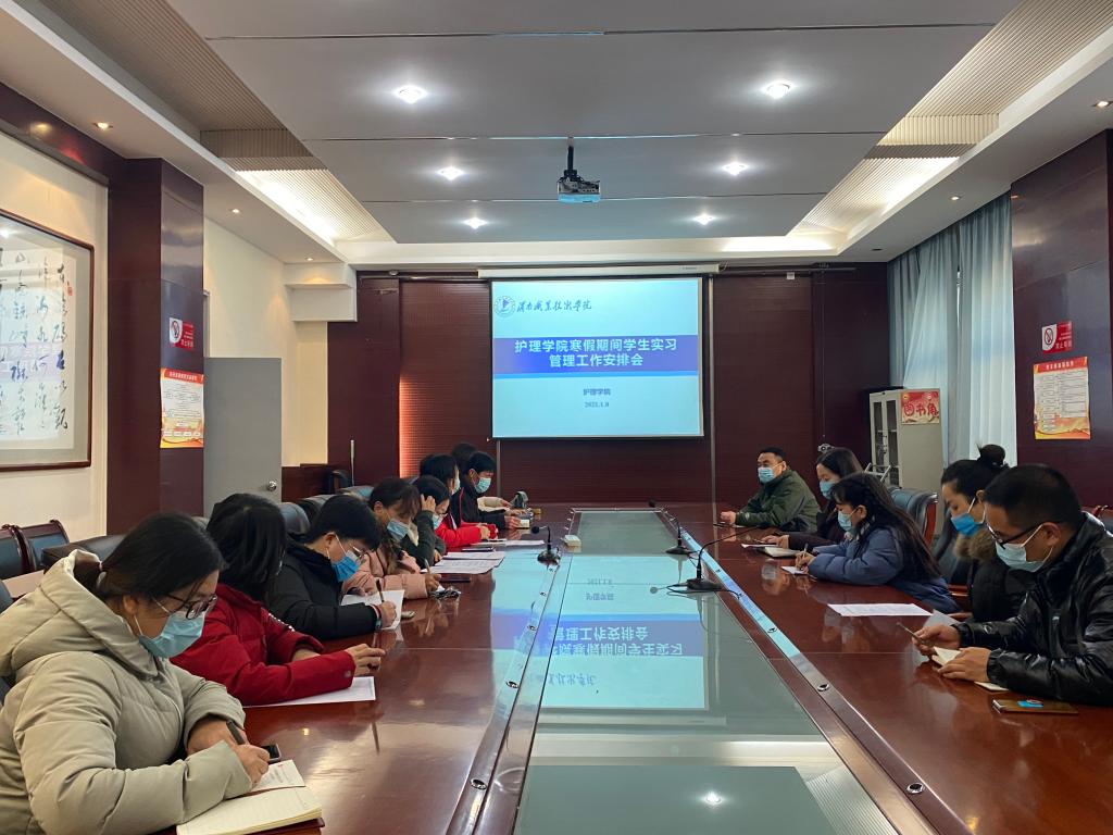 为加强疫情防控常态化下寒假期间实习生管理及安全教育,确保实习生的身心健康和实习质量,买球赛十大平台于1月8日下午在医训楼南楼第一会议召开了寒假期间学生实习管理工作安排会。党总支副书记马淑红、副院长吴亚飞、招生就业科科长何宇、教学科科长王媛、教学科副科长孙会娟、团总支书记白小萌、实习办崔海峰、刘欣以及实习班班主任、辅导员参加了会议。会议由王媛主持。