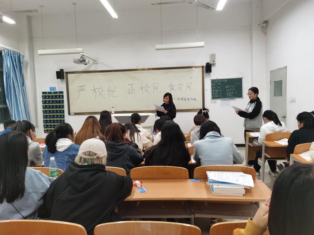 为了进一步增强我院学生纪律观念,规范学生日常行为,创建“校风正、学风浓”的良好育人环境,11月2日下午,买球赛十大平台组织全体在校生以班级为单位召开了“严校纪 正校风 促学风”主题班会,班会由各班辅导员、班主任主持。