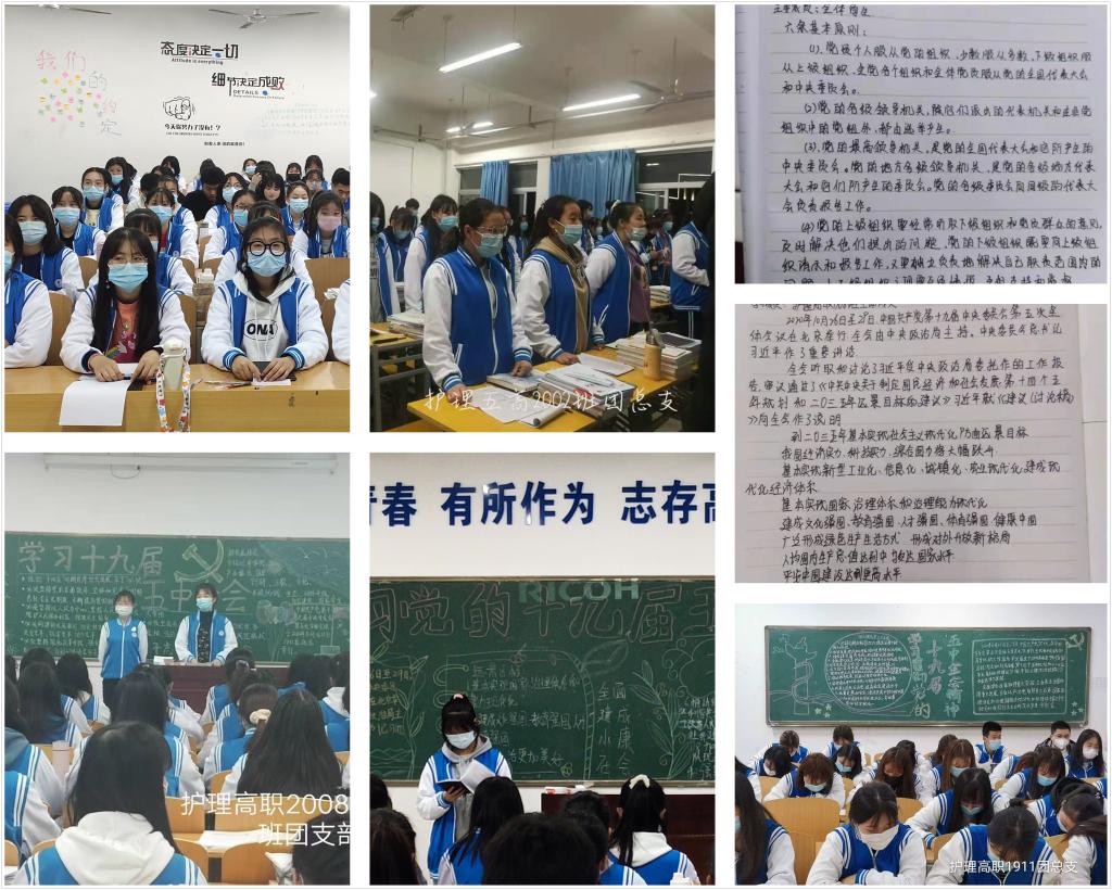 各班同学分享了对“党的十九届五中全会精神”的学习心得。护理高职1906班李悦说:“十九届五中全会给新时代我国社会主义发展把好了方向,定好了目标,绘制了蓝图,我们大学生要坚定政治立场,听党话,跟党走,做新时代敢担当、有作为的有志建设者。”护理高职1902班张雯环认为:“十九届五中全会给中国现阶段发展作了定位,我们应该充分认识五中全会的重要意义,坚持党的理论学习和专业知识学习,努力精强护理实践操作能力,不忘医学生减轻病患痛苦的初心,勇担护生救死扶伤之责,为祖国医护事业贡献力量。”(撰稿:买球赛十大平台 王蓉 审核:李晓乾)