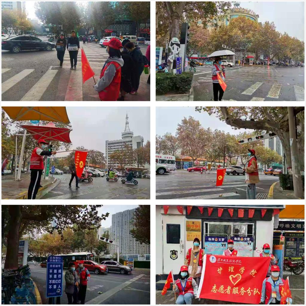 11月17日上午和11月19日下午,买球赛十大平台志愿者服务队10人到市区信达广场附近十字路口当起"临时交警”。