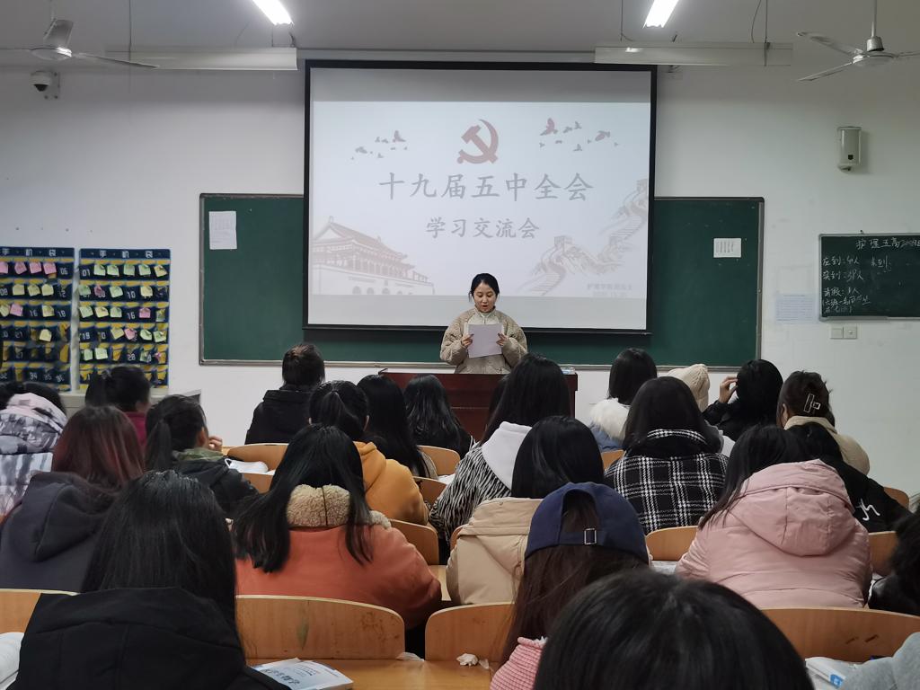 11月26日下午,买球赛十大平台团总支在公共教学楼南楼319教室召开了“学习十九届五中全会精神”学习交流会,团总支书记白小萌、副书记党员敏、杜磊,各部门部长以及40名学生代表参加了交流会,交流会由团总支秘书部靳欣芝主持。