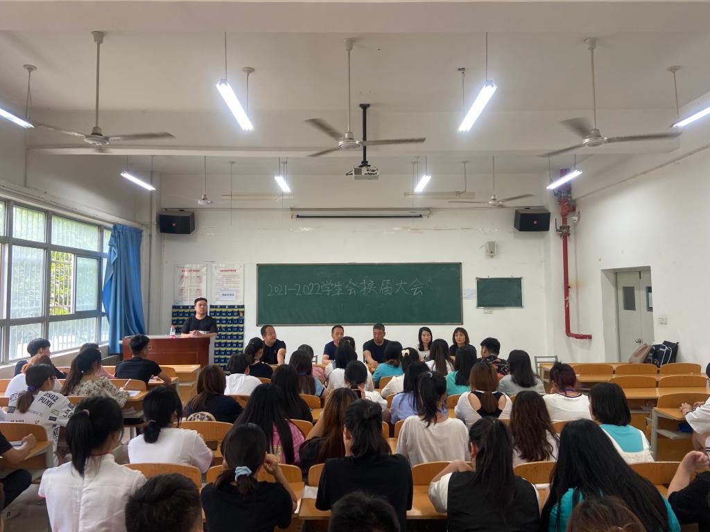 为了增强学生会工作的凝聚力,弘扬学生责任、担当精神,6月9日下午,买球赛十大平台2021-2022年学生会换届大会在公共教学楼南楼105室召开。买球赛十大平台学生管理科科长李博,副科长苏建军,10余名辅导员及100余名学生代表参加了大会。辅导员李潮主持了会议。