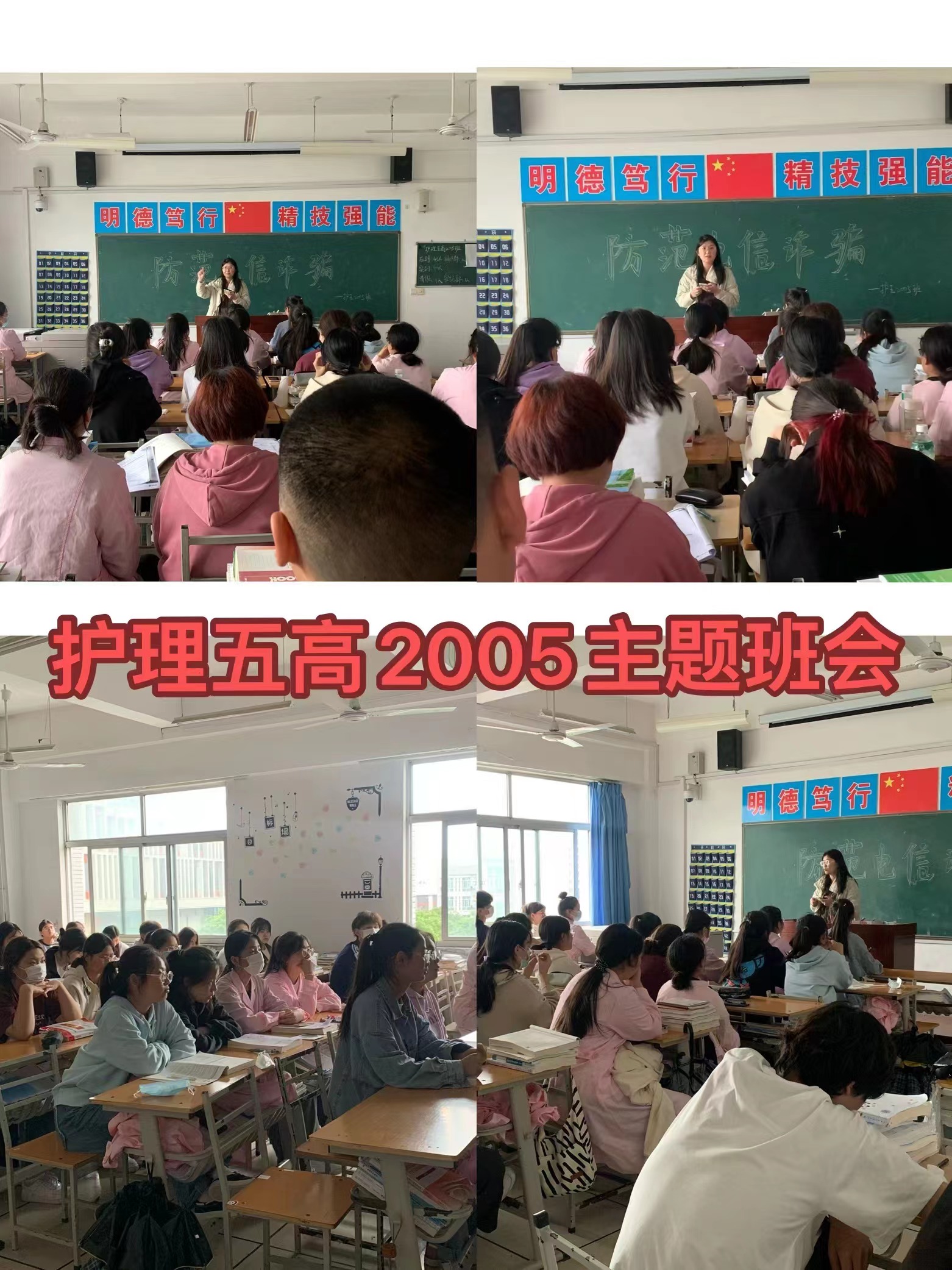 班会上,老师们向同学们分享当前存在于社会上形式多样的网络诈骗手段,同时邀请同学们积极分享生活中的诈骗案例,加深了同学们对电信诈骗的认识,并积极签署了《不参与电信网络诈骗承诺书》,保证积极践行“七个一律”、“八个凡是”、“三个不要”,预防电信诈骗事件的发生。