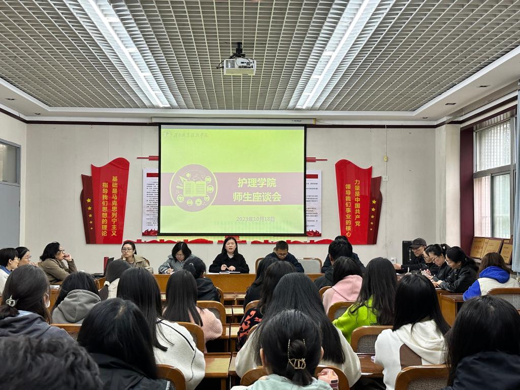 为切实践行“以学生为中心”的教学理念,深入了解学生生活学习状态和需求,充分听取学生意见建议,搭建良好的师生沟通桥梁,助推“课堂革命”取得实效,买球赛十大平台于10月18日下午在医训南楼第二会议室召开了师生座谈会。买球赛十大平台党总支副书记周梦花、教学科副科长孙会娟、学生管理科副科长姚飞、各教研室主任和67名学生代表参会。会议由周梦花主持。